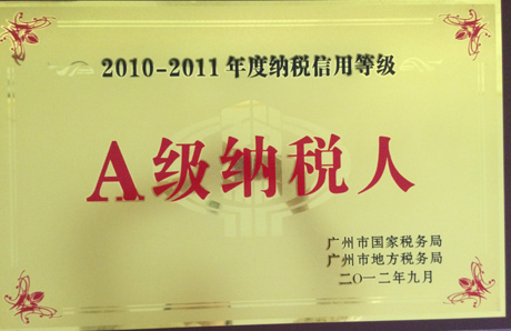 | 2010-2014年:廣州市國家、地方稅務(wù)局 A級(jí)納稅人 |