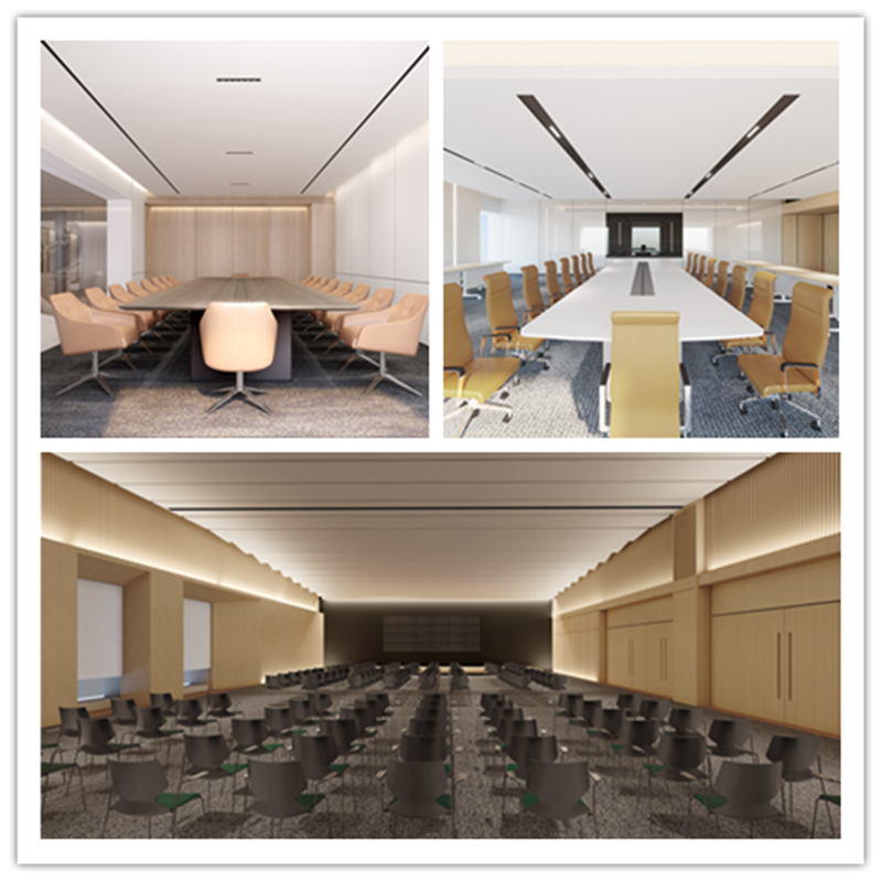 封頂儀式結(jié)束后,在陳榮董事長的帶領(lǐng)下,嘉賓們還參觀了共享會議廳(約3600平方),根據(jù)設(shè)計規(guī)劃,設(shè)有大中小各式會議室,可供幾十至幾百人進(jìn)行會議,為園區(qū)及周邊企業(yè)提供便利商務(wù)配套。